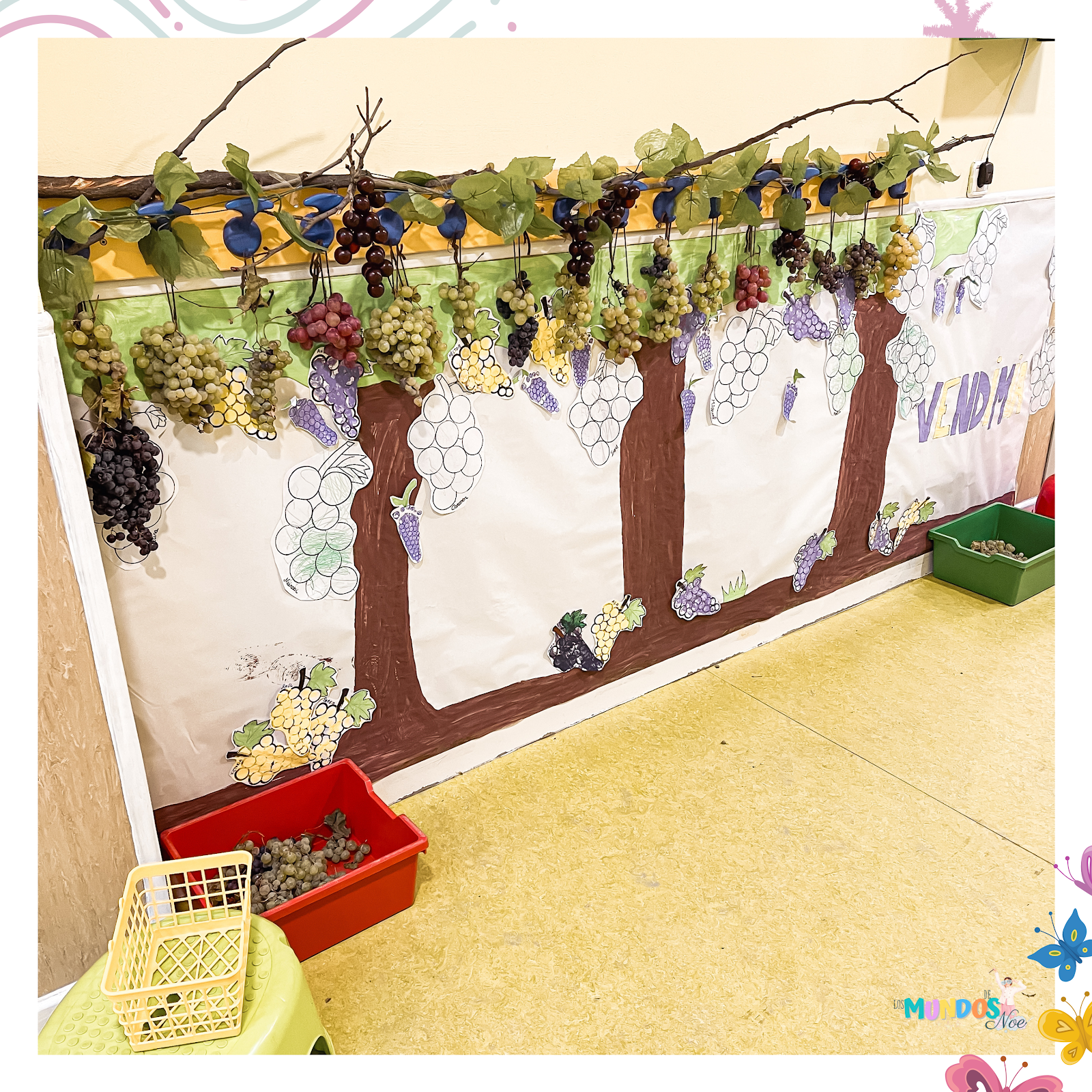 Unas cuantas uvas, algo de decoraciรณn, unas perchas, palos, cestas, cubetas, algo de mรบsica y… ¡voilร !.